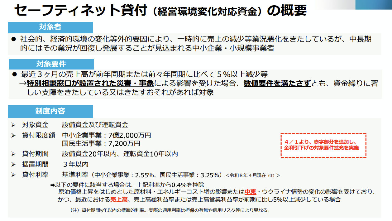 公式ページ:経営環境変化対応資金(セーフティネット貸付)