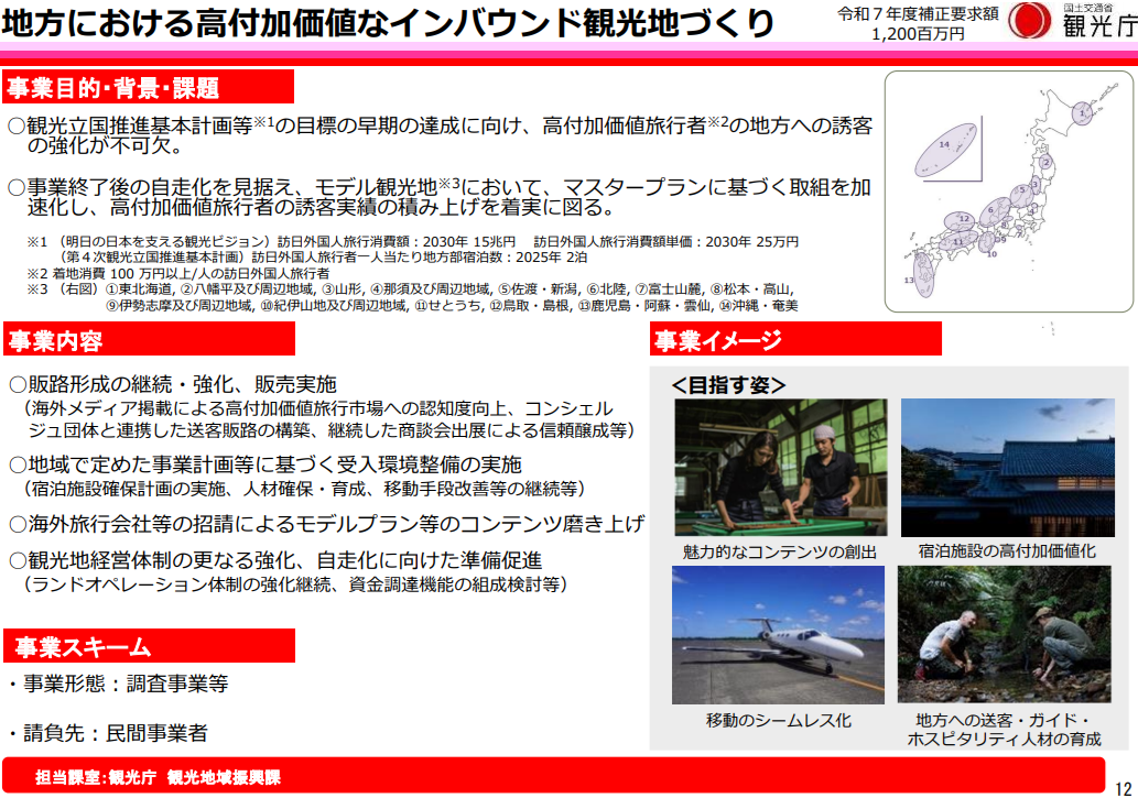 地方における高付加価値なインバウンド観光地づくり(12億円)