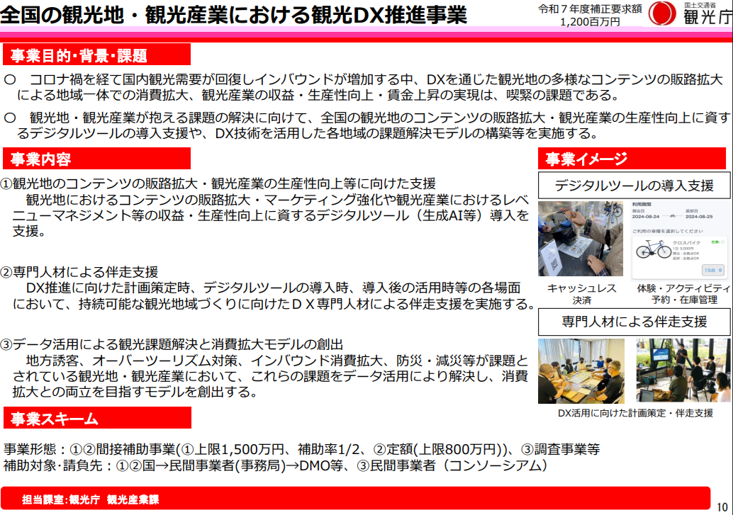 全国の観光地・観光産業における観光DX推進事業(12億円)
