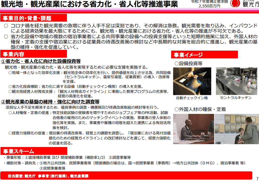 観光地・観光産業における省力化・省人化等推進事業(25.5億円)