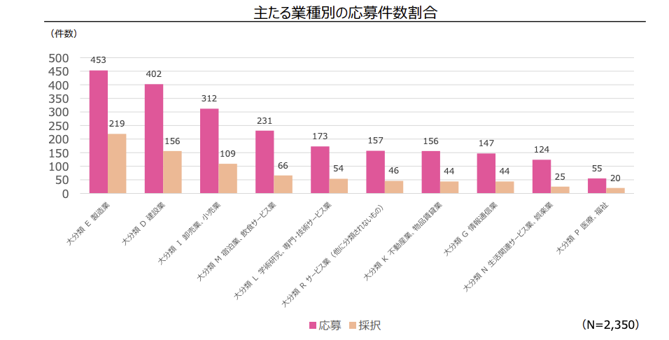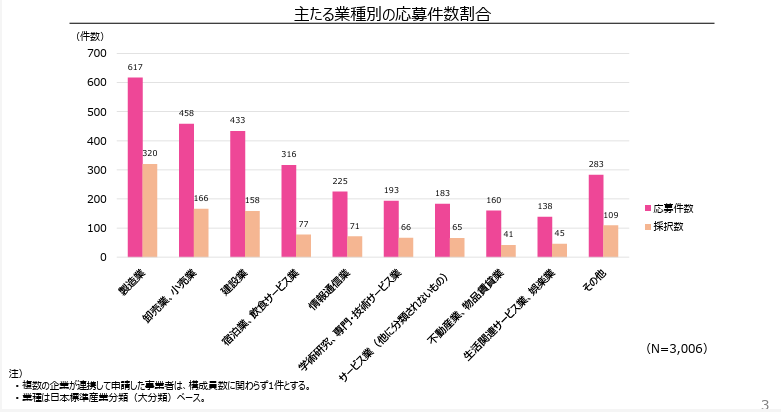 業種ごとの応募件数・採択結果