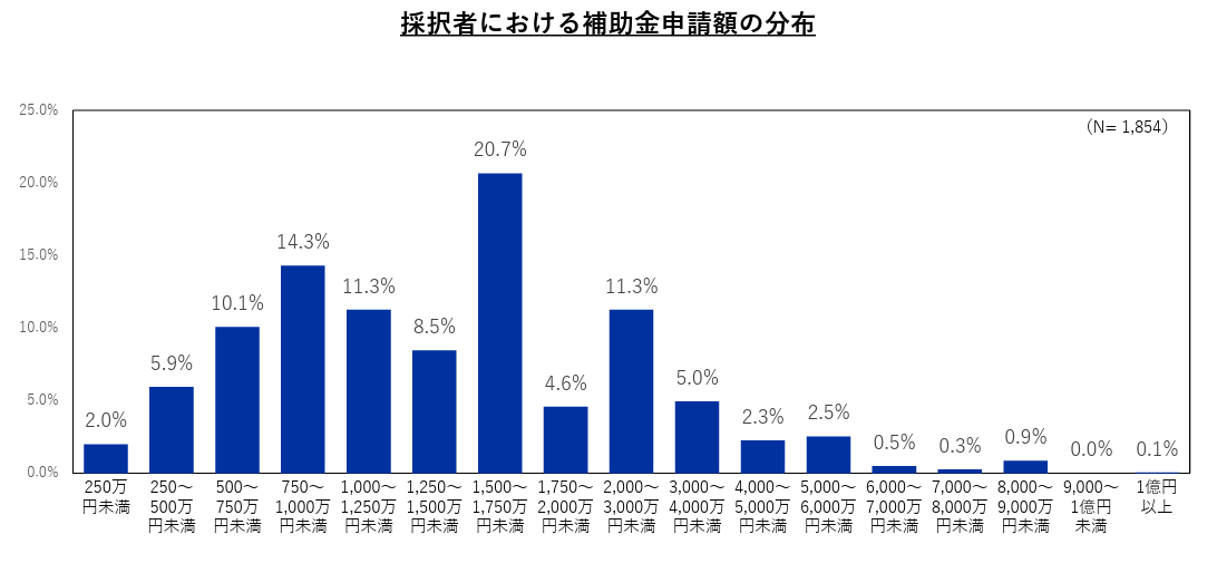 第3回の採択率は、申請数が2,275件に対し、採択数が1,854件、採択率は66.8%という結果でした。約6割~7割の事業者が採択されている計算になります。