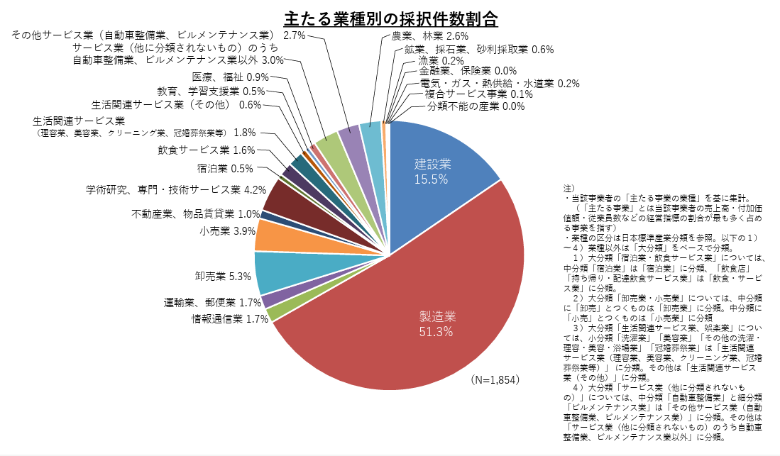 一番多かったのは製造業で、全体の51.3%を占めています。次に多いのが建設業で、全体の15.5%という結果でした。