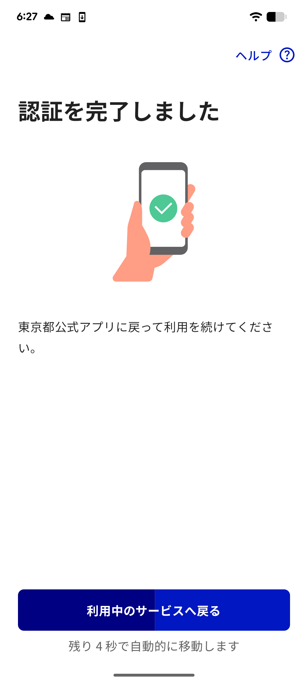 これで東京アプリでのマイナンバーによる本人確認は終了です。